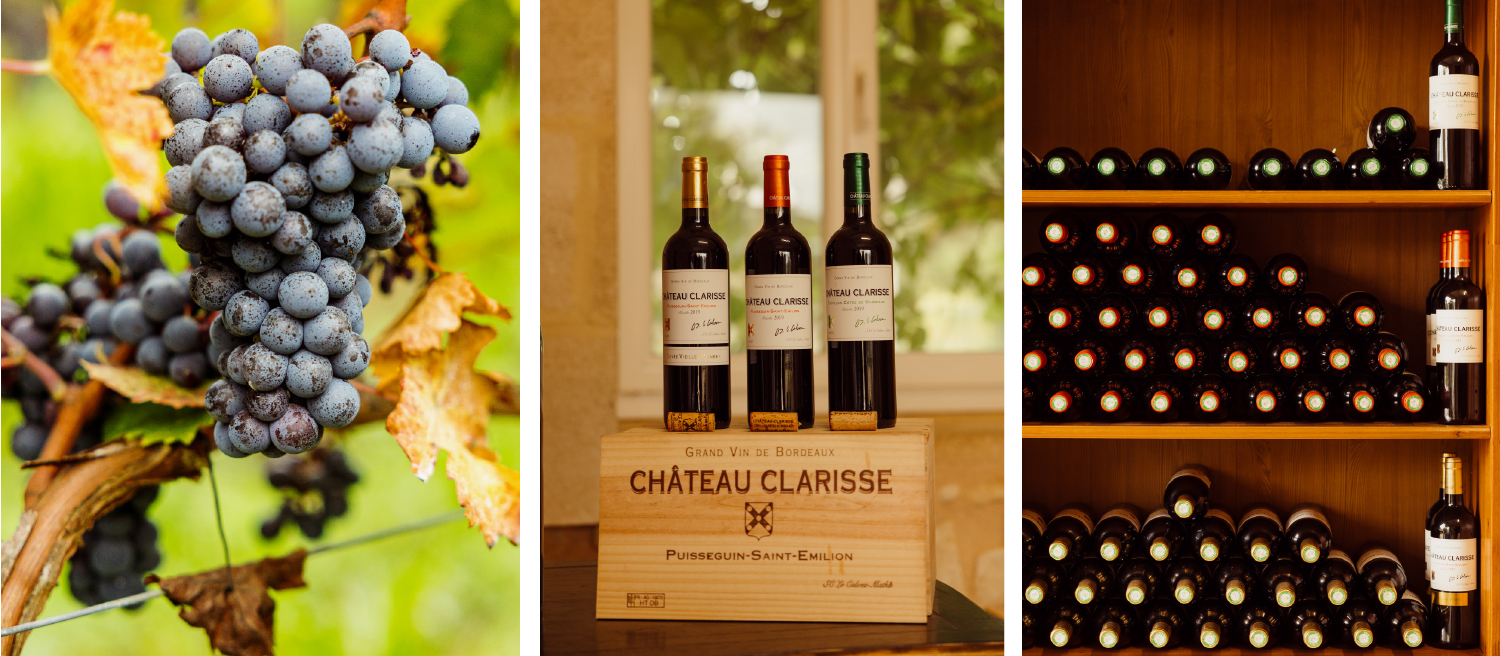 Nous avons restructuré 70 % du vignoble ces dix dernières années, tout en conservant certaines vieilles parcelles. Château Clarisse produit 80 000 bouteilles par an. Le vignoble comprend 55 % de Cabernet Franc, 40 % de Merlot, 3 % de Petit Verdot et 2 % de Carménère.