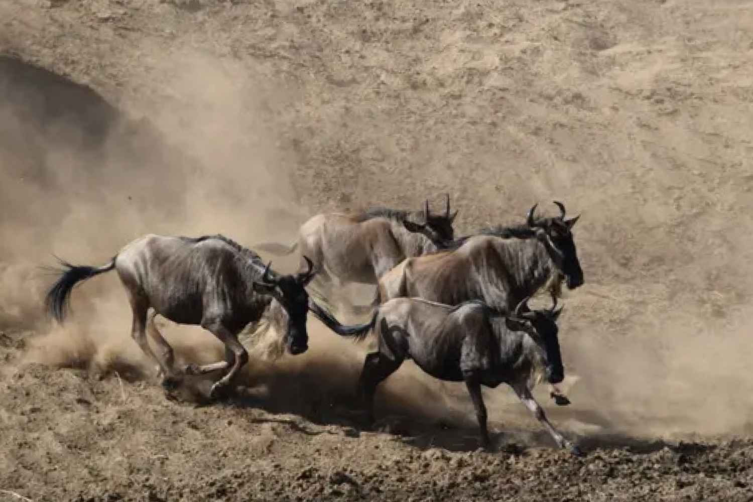 La rivière Mara : à la croisée de la Tanzanie et du Kenya, elle est la dernière étape avant les plaines fertiles du Masai Mara. Sa traversée est ardue, les crocodiles sont en alerte maximale, créant souvent des mouvements de panique parmi les troupeaux. On peut assister à des attaques, mais aussi observer la bravoure des troupeaux qui parviennent à atteindre l’autre rive.