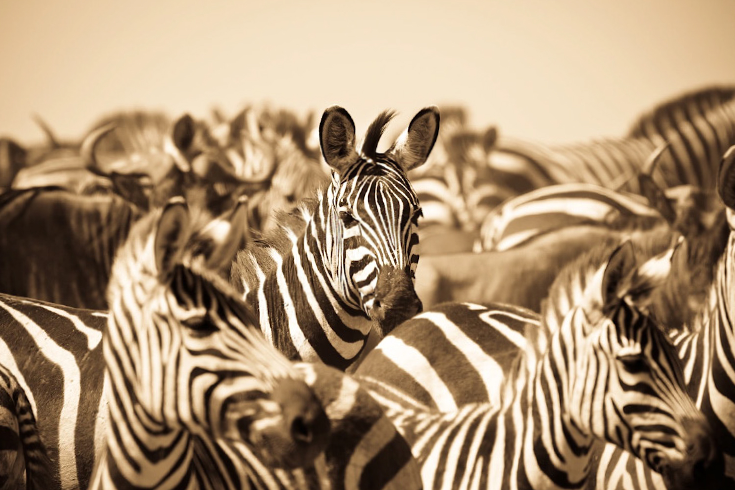Le parc national du Serengeti en Tanzanie : le meilleur emplacement pour observer la Grande Migration. C’est le point de ralliement des troupeaux de zèbres et de gnous qui se rassemblent et s’accouplent. Cependant, les troupeaux doivent affronter un obstacle de taille : la rivière Grumeti. Seuls les plus résistants survivent à cette étape.