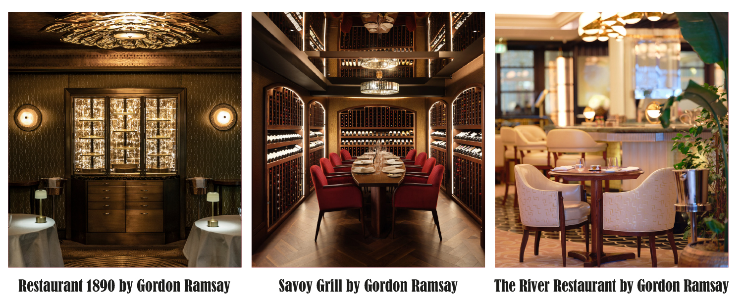 Inauguré en février 2022, Restaurant 1890 by Gordon Ramsay se veut un hommage à Auguste Escoffier, l’emblématique chef qui a inspiré de nombreux étoilés dans le monde. Ouvert uniquement le soir, l’adresse et ses vingt-six couverts associent mets et vins sur le mode majeur. Les produits d’exception, sublimés par le savoir-faire de Gordon Ramsay et de son équipe, s’associent aux plus grands crus, issus de vignobles internationaux.