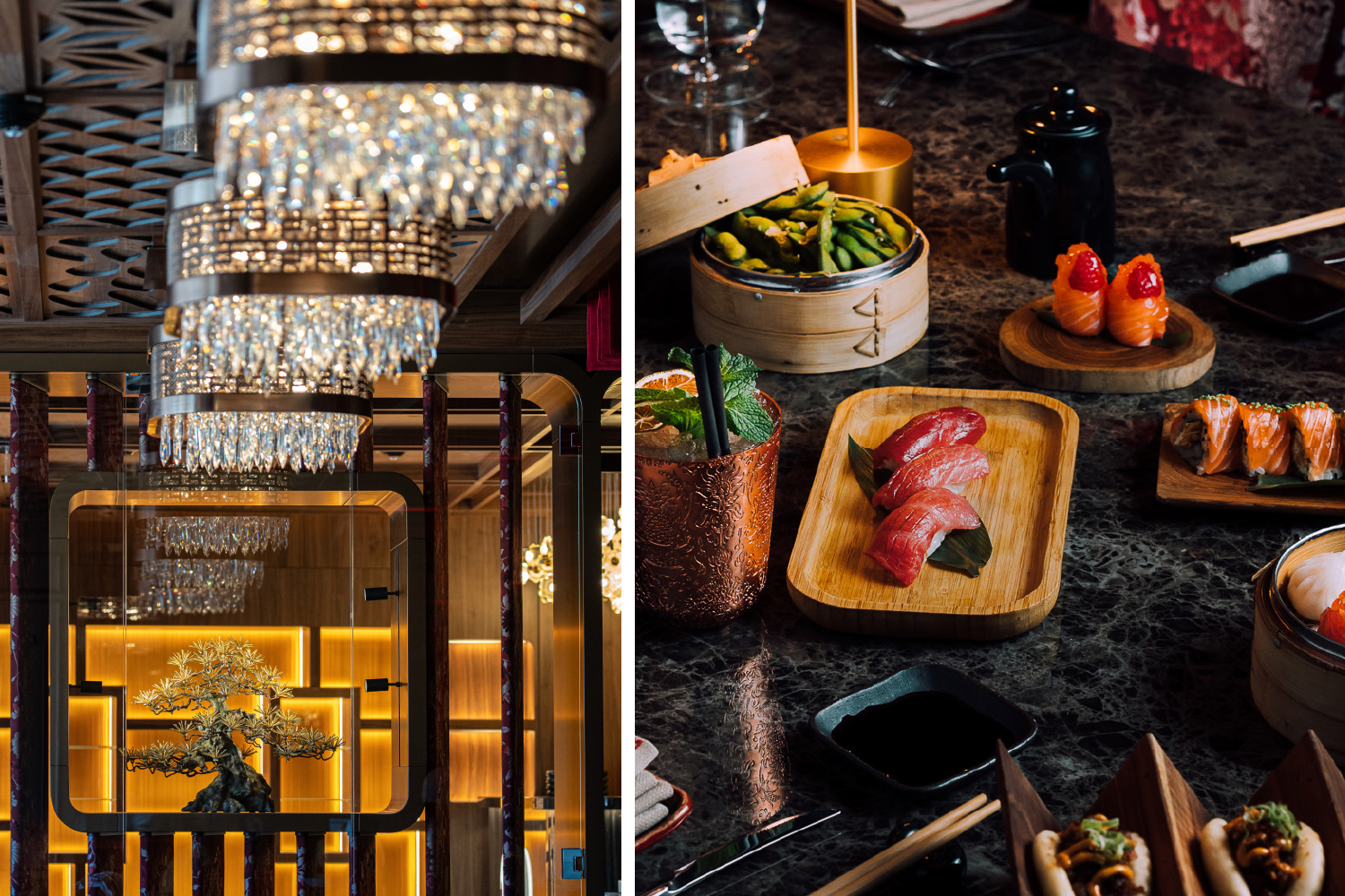 Venir au MayaBay Courchevel 1850 est avant tout une expérience, à travers le design, le confort et l’atmosphère ; la cuisine en est la marque la plus forte, laquelle oscille entre influences thaïlandaises et japonaises. Dans la continuité des adresses de Monaco, Dubaï, Porto Montenegro (et dès 2026 de West Palm Beach), le menu s’ouvre sur un choix pointu de plats classiques et novateurs : rolls, sushis, currys, robatas, offrant une large palette de saveurs. L’expérience MayaBay se déploie aussi autour de cocktails, de vins d’exception et de spiritueux d’excellence tels que le whisky japonais.